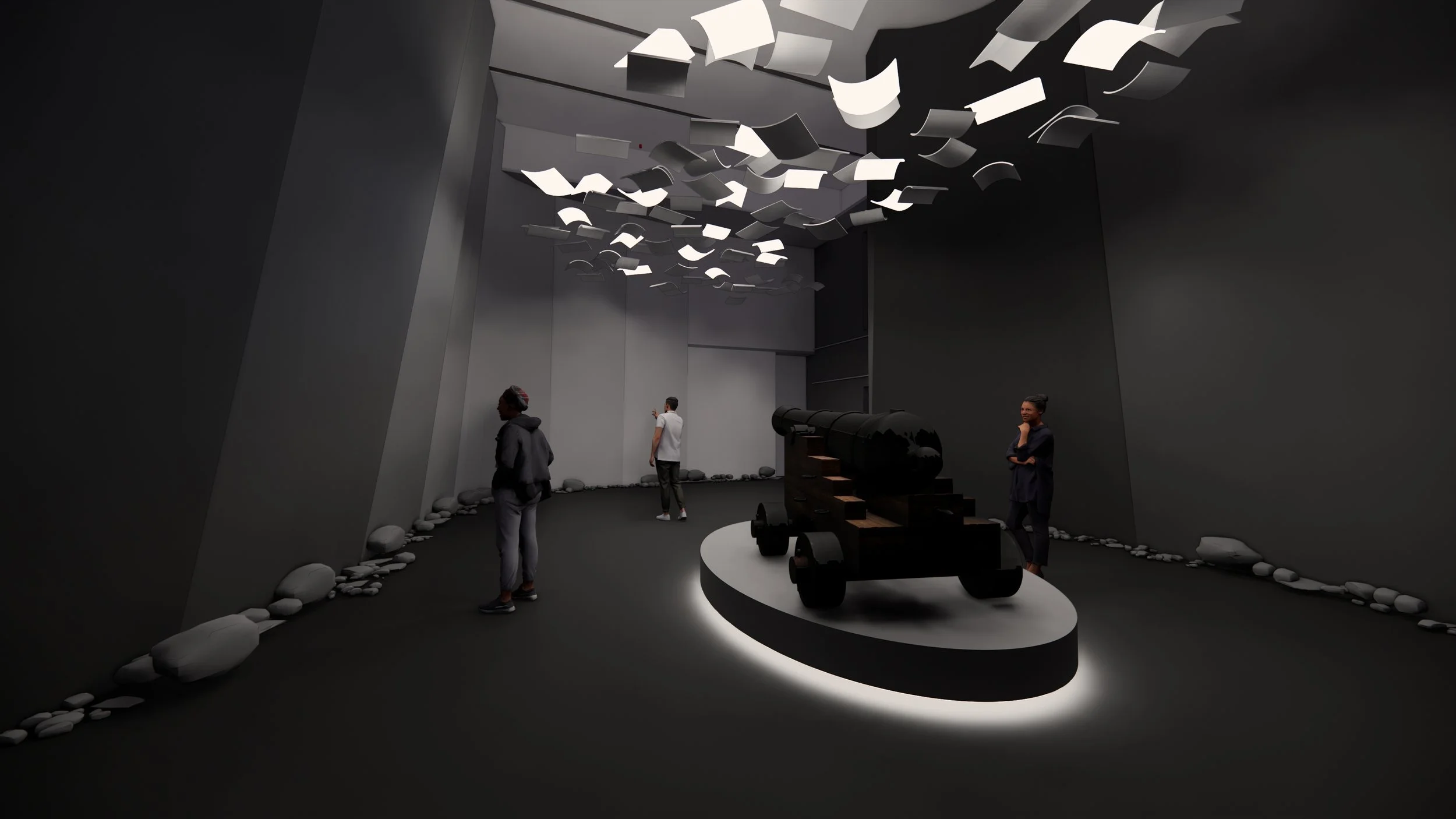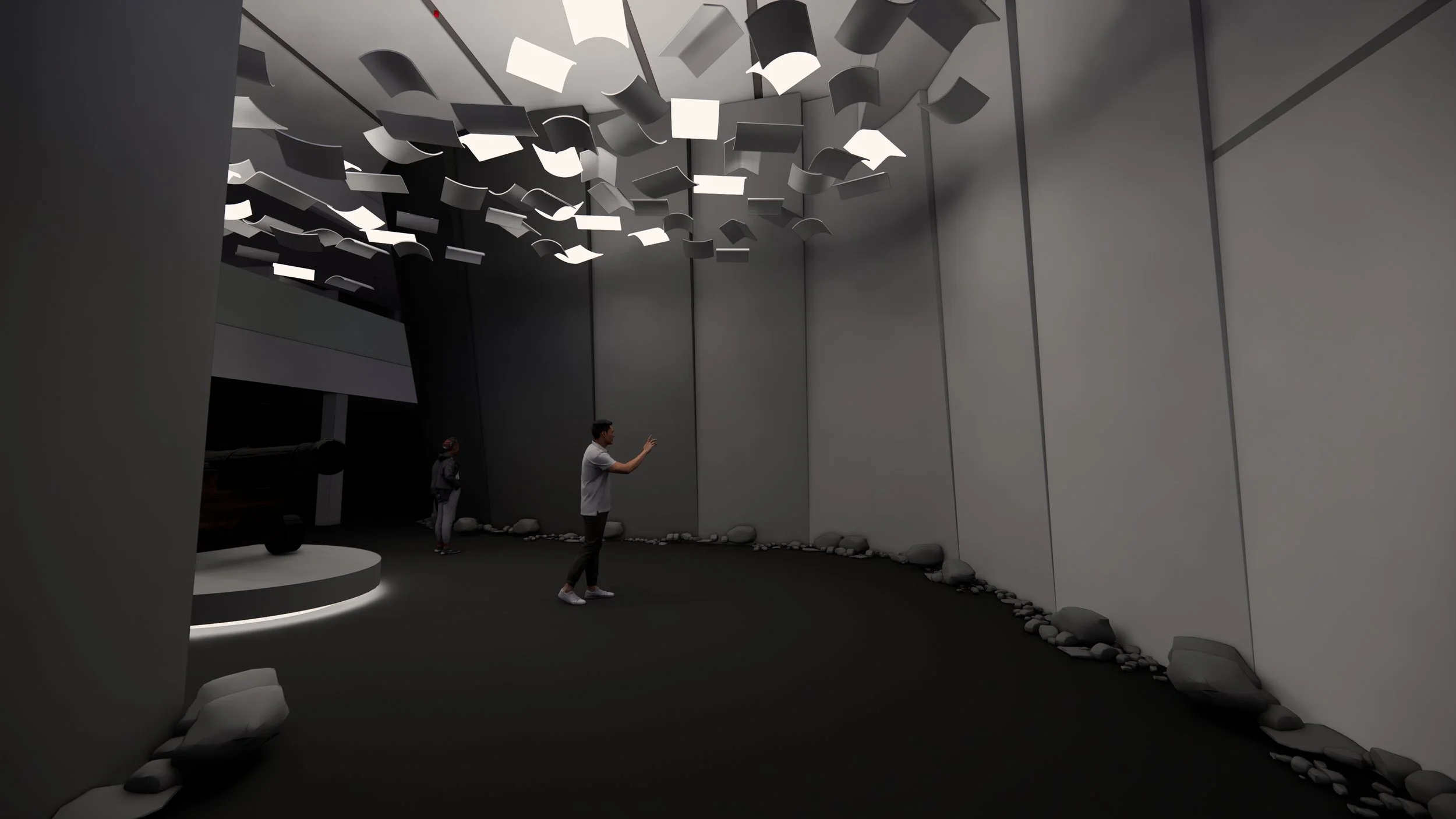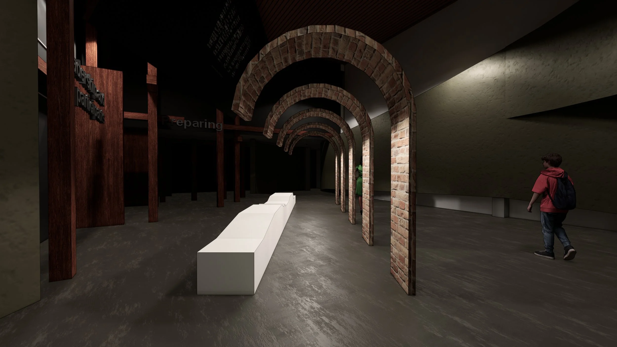 Visitors walk into a space that starts from light and as they get closer to 5.3 gets darker where the war starts. The main key experience is in heart of 5.1/5.2 which is in the center and is focusing on personal stories where we want visitors to feel what they felt and walk in the character shoes, why they made those decisions and let them think. The fact that regardless of their battle of heart and mind they all had to go and fight.
