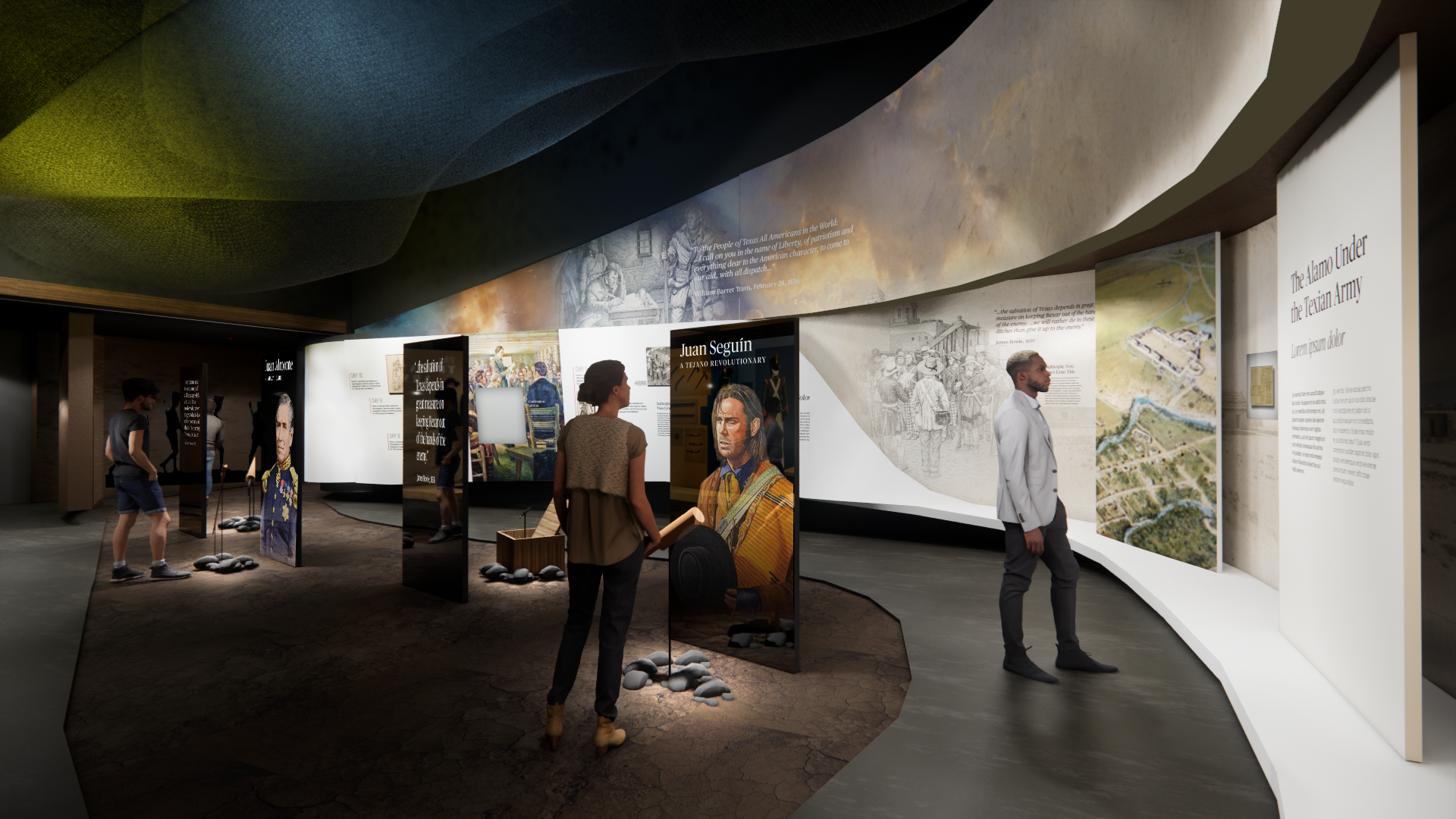 Visitors are invited to meet some of the diverse figures whose paths converged at the Alamo. Soldiers and their families inside the fort, Mexican leadership staged outside, delegates from Béxar and the Alamo garrison traveling to the Convention of 1836, and Tejano scouts out in the field share their stories, bringing a personal perspective to the broader issues explored around the perimeter of this area.