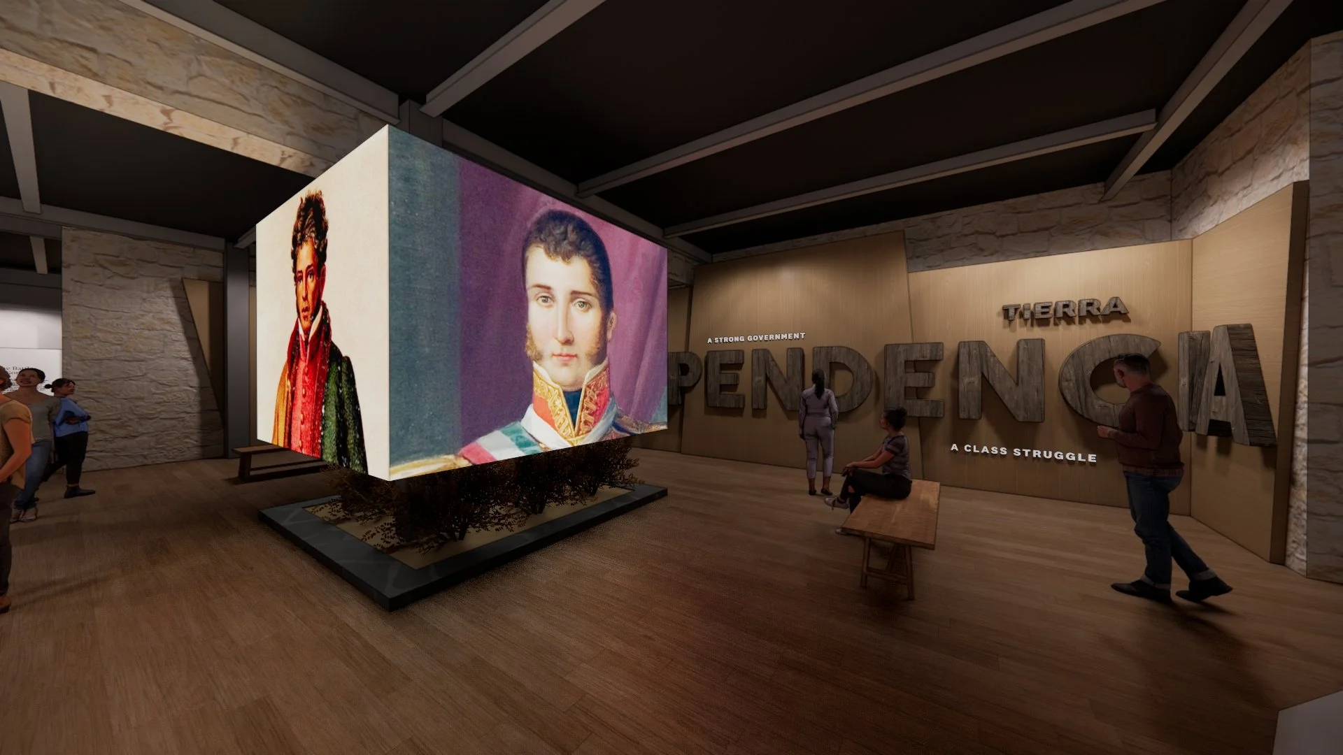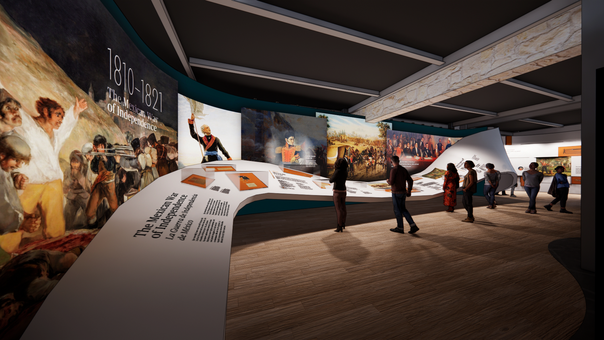 Representative physical objects that respond to visitors’ touch invite them to come closer and listen to key individuals’ stories from this critical period in early 1836.