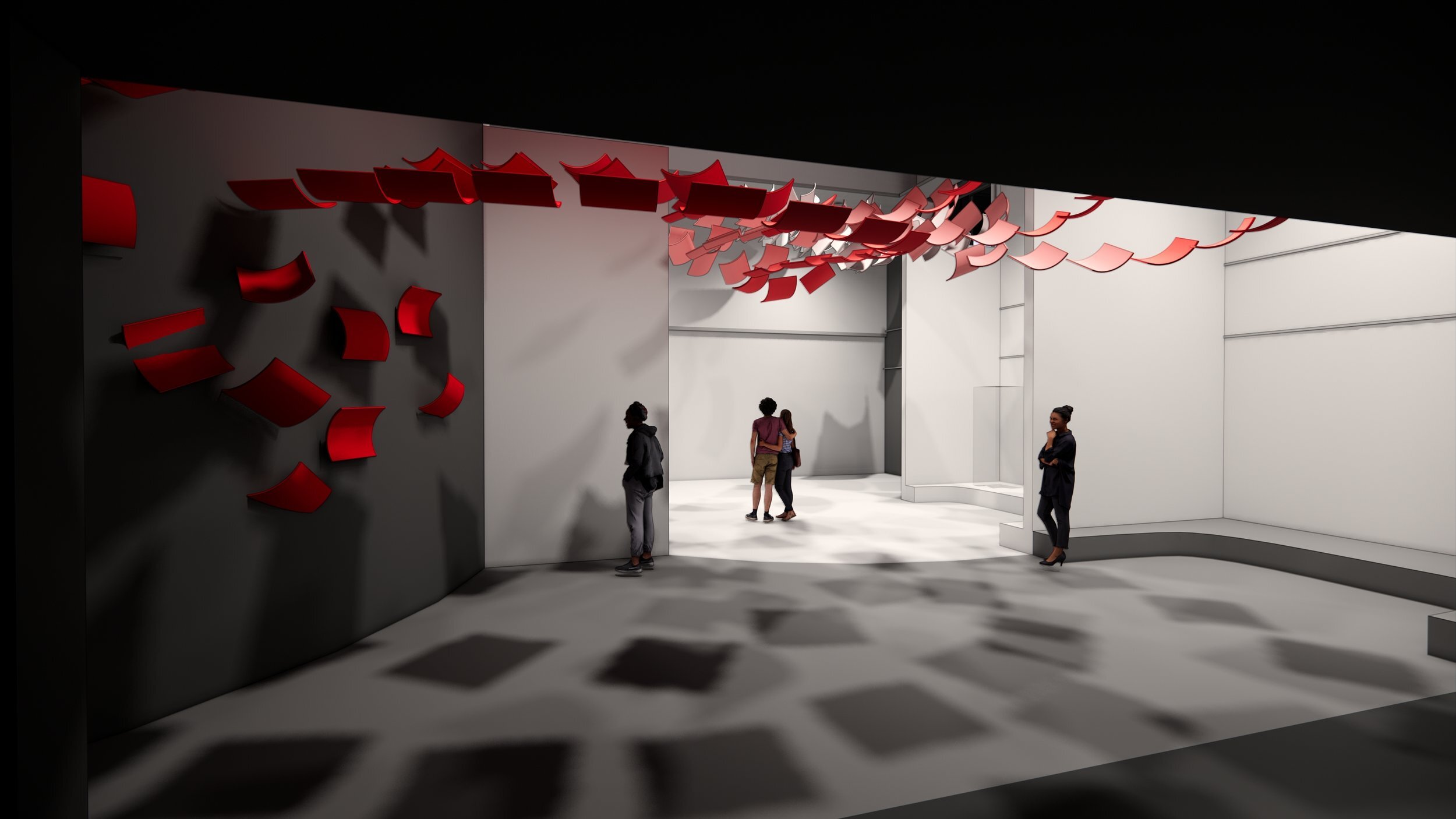 Visitors walk into a space that starts from light and as they get closer to 5.3 gets darker where the war starts. The main key experience is in heart of 5.1/5.2 which is in the center and is focusing on personal stories where we want visitors to feel what they felt and walk in the character shoes, why they made those decisions and let them think. The fact that regardless of their battle of heart and mind they all had to go and fight.