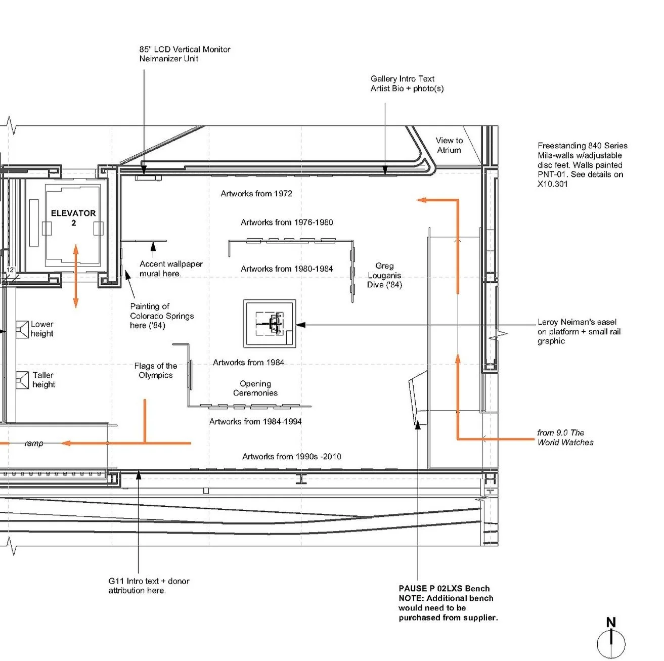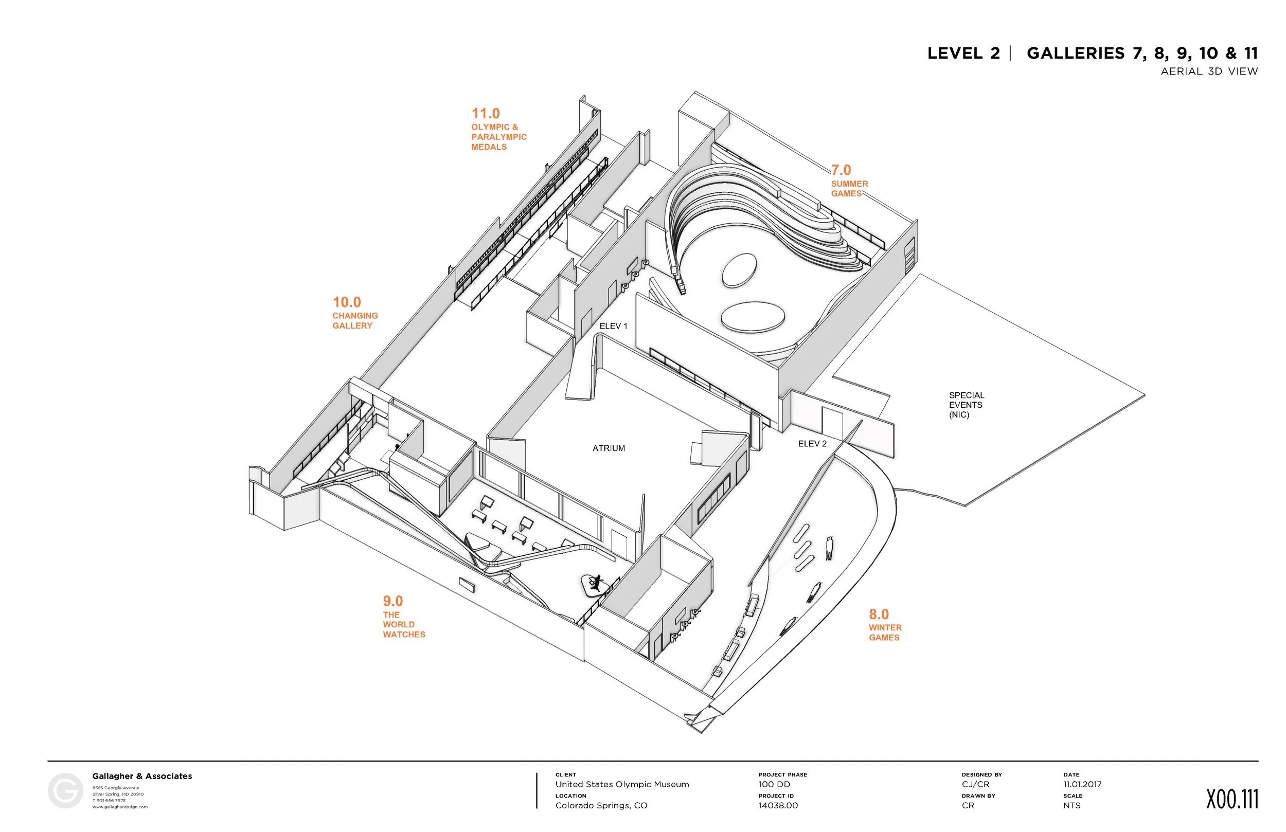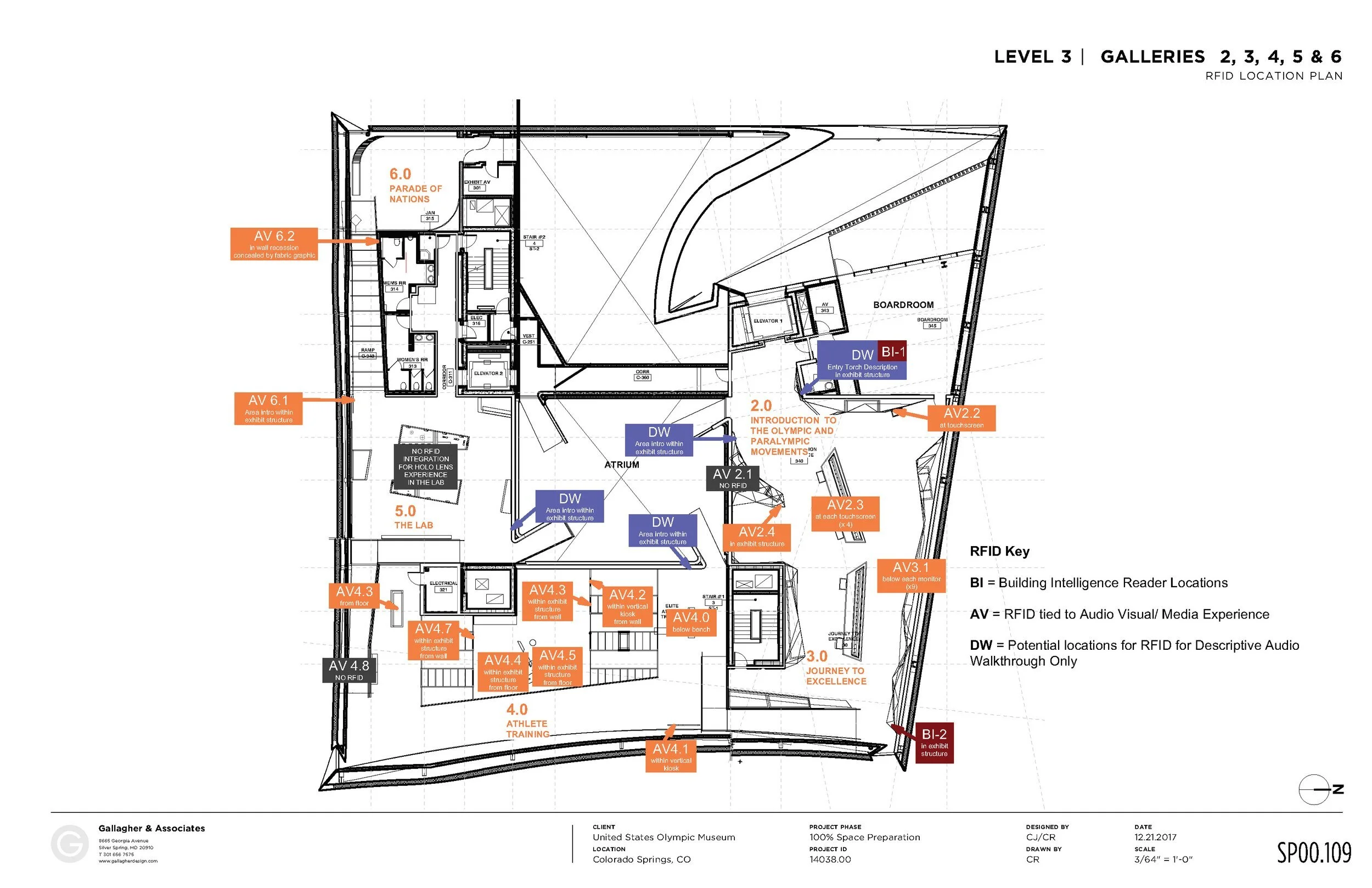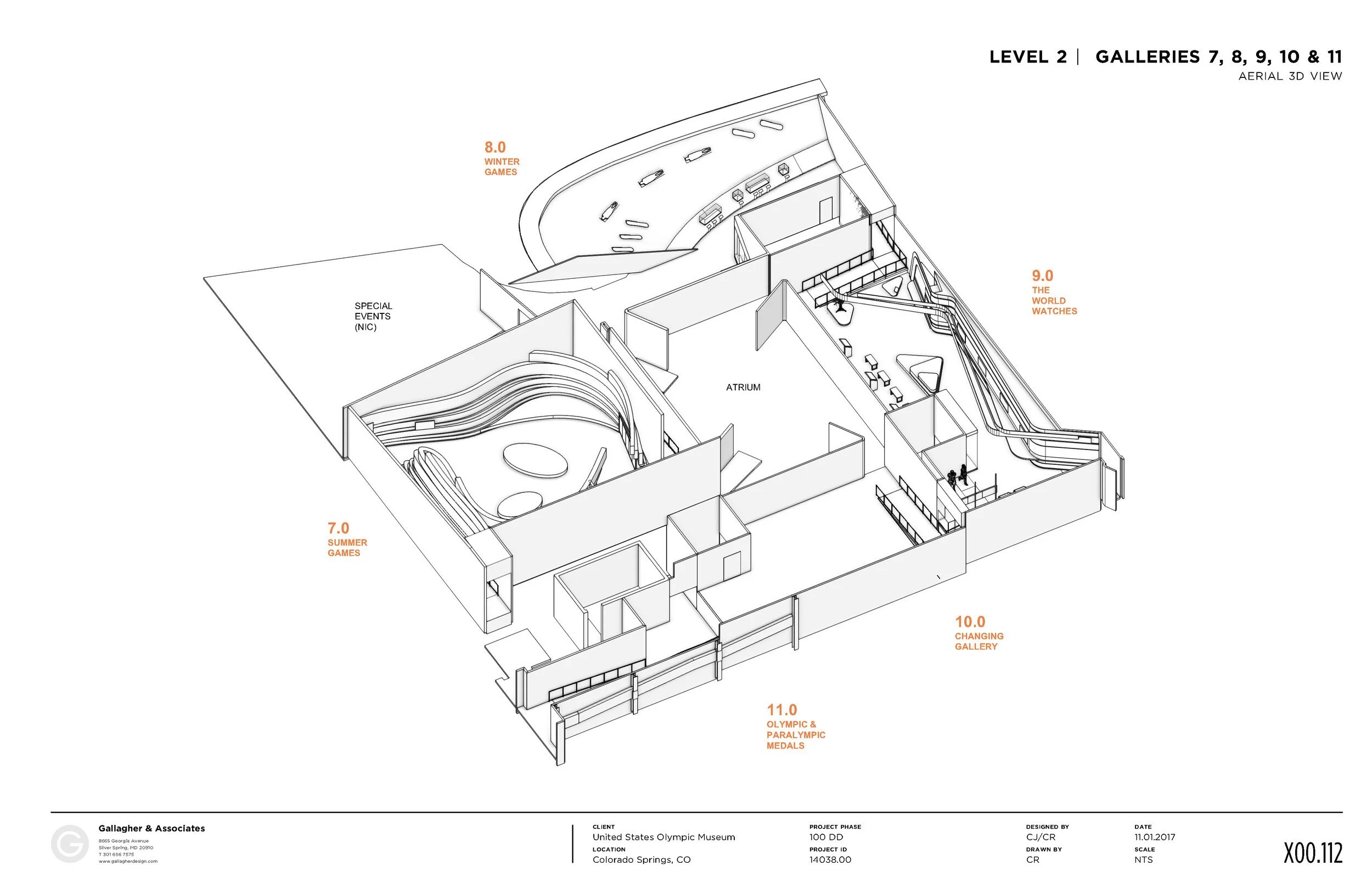 The Conceptual Design phase of the project which began in 2014 Early versions of the gallery concepts were provided to the building architects and helped inform the architecture. The specific designs of the galleries went through many iterations, in response primarily to the unique geometry of the building shell and exploration of initial core concepts.